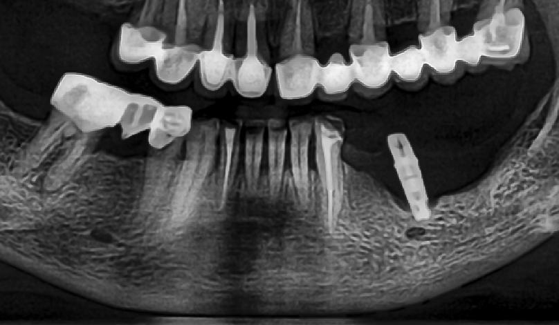 Implantul dentar nu ar trebui sa fie vizibil. In mod normal, acesta este acoperit de gingie si de coroana dentara. O astfel de imagine poate semnala o problema legata de pozitionare, pierderea tesutului gingival, infectie puternica sau resorbtie osoasa. Contactati echipa medicala daca implantul dentar este expus!